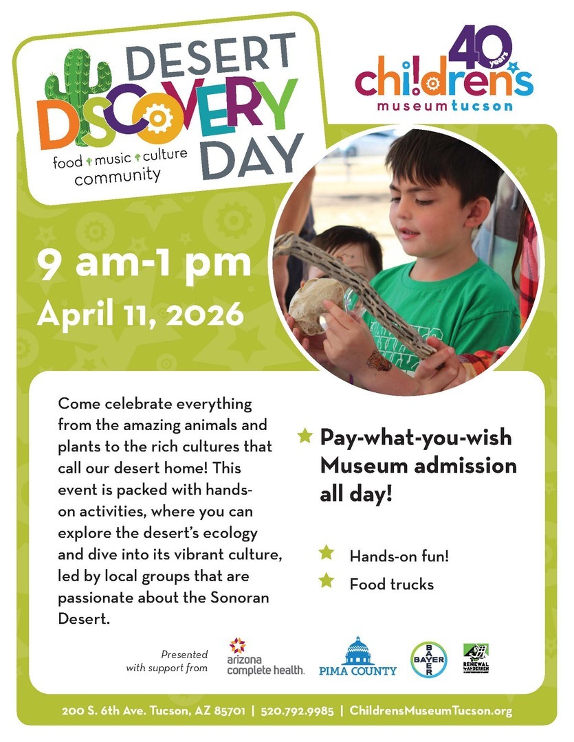 Come celebrate everything from the amazing animals and plants to the rich cultures that call our desert home! This event is packed with hands-on activities, where you can explore the desert’s ecology and dive into its vibrant culture, led by local groups that are passionate about the Sonoran