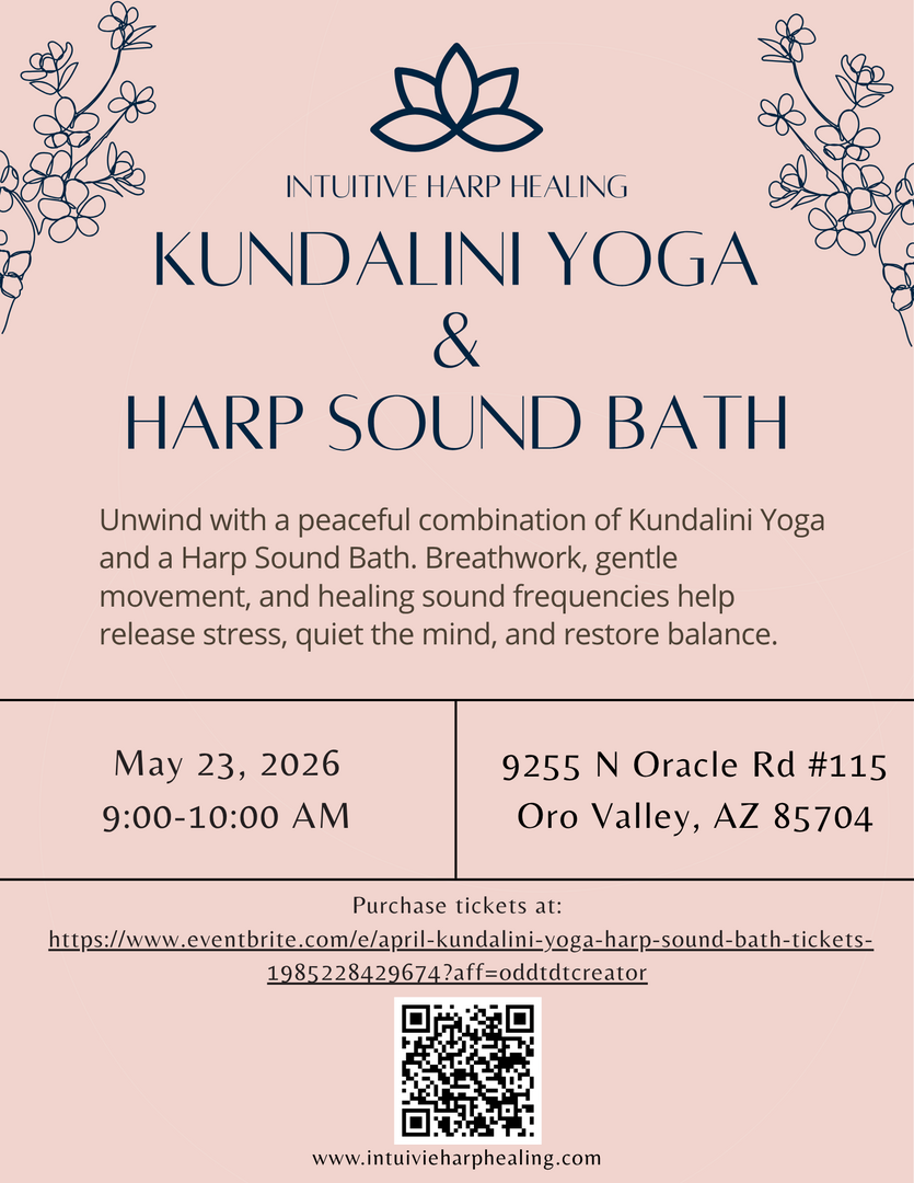 Unwind with Kundalini Yoga, harp, and crystal bowls- a unique experience to relax and rejuvenate your mind, body, and spirit.