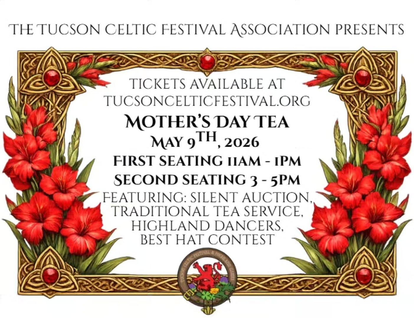 Please join us for Tucson Celtic Festival Association's 6th Annual Mother's Day Tea!