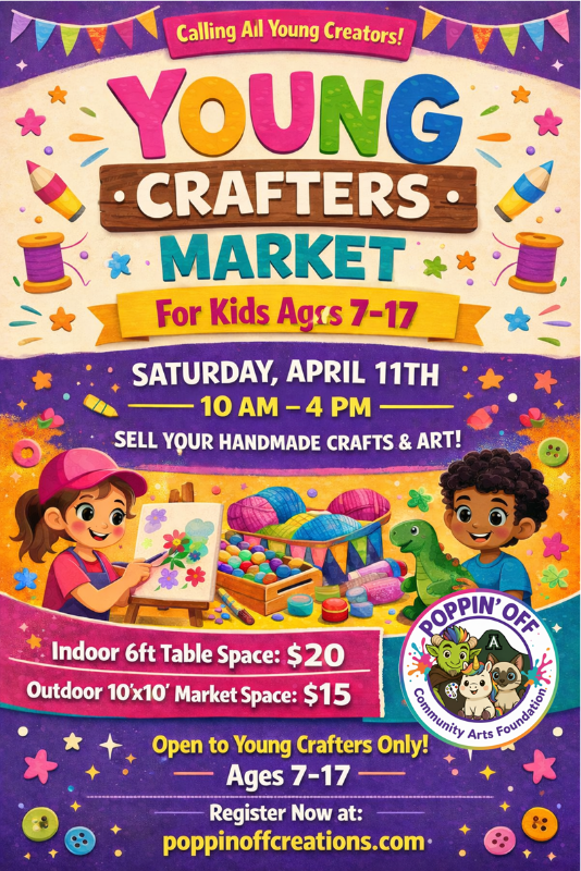Young artists and makers are invited to showcase and sell their creations at the next Young Creators Market at Poppin’ Off!