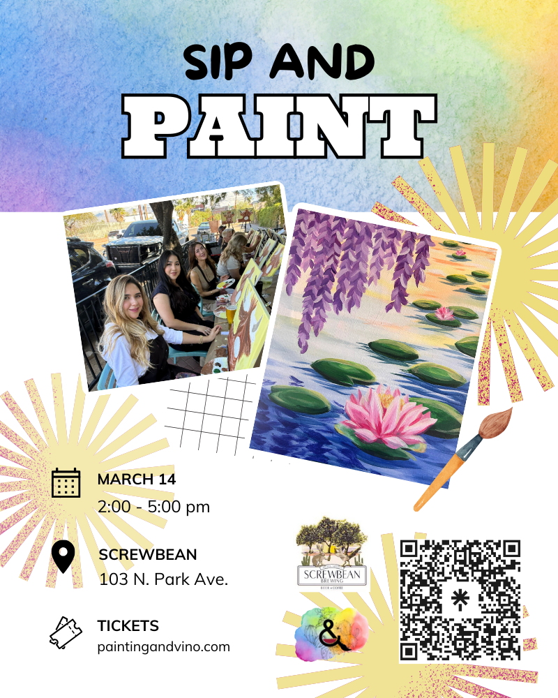 Join us for beer, art and fun on the gorgeous Screwbean Brewing patio! Get ready for a creative, peaceful time at this “Water Lilies” event! Whether you’re an experienced artist or just looking for a memorable experience, this paint and sip promises an approachable, artistic activity for friends, family members and couples.