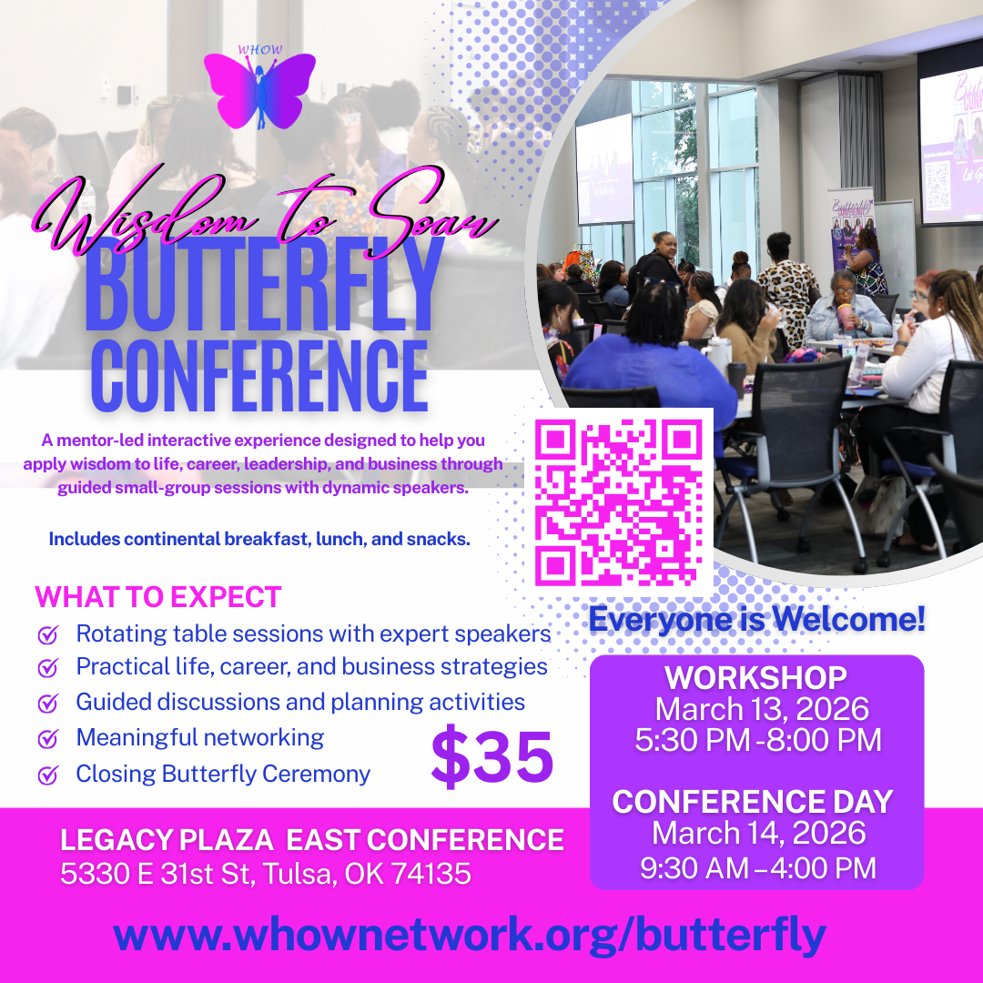 WHOW creates experiences and programs that support personal development, leadership growth, and pathways to education, employment, and entrepreneurship. The Butterfly Conference is one of its signature annual events designed to equip individuals with tools, connection, and community for sustainable growth.