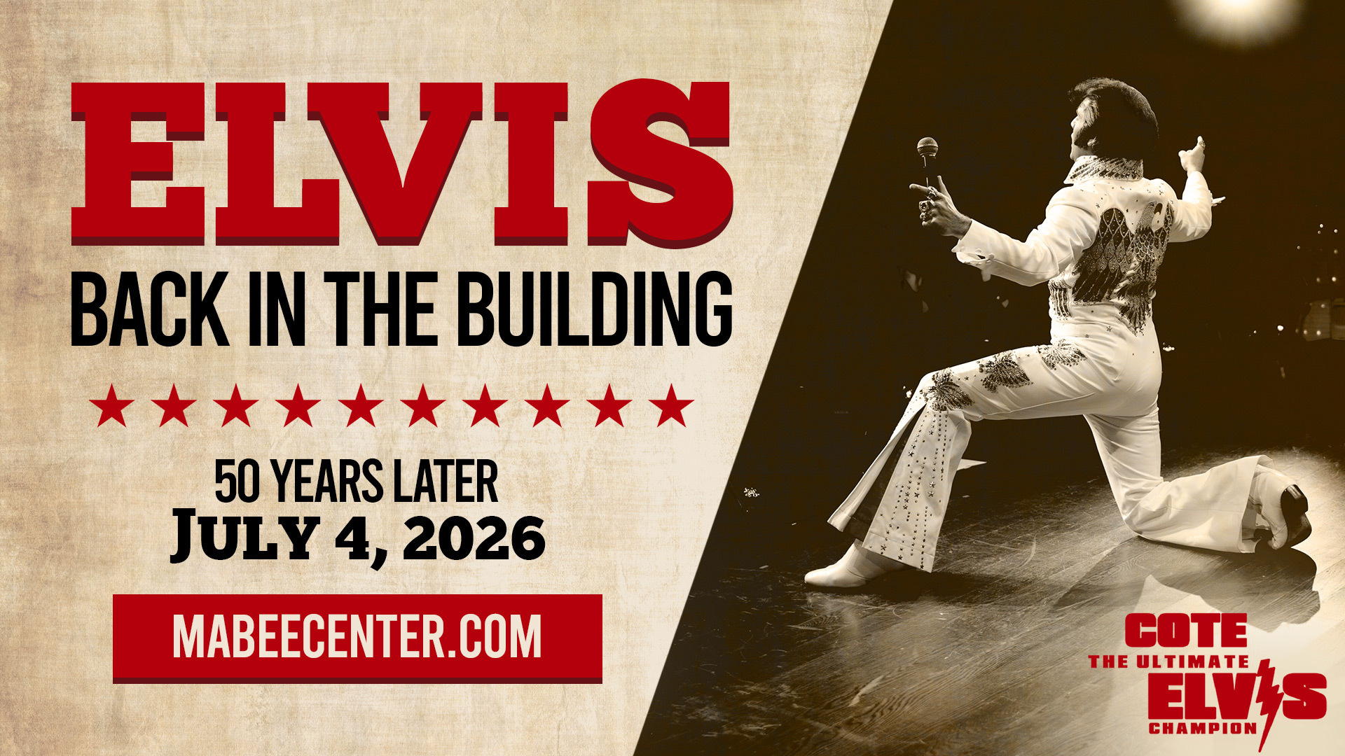 “ELVIS: Back in the Building” featuring Cote Deonath, The Ultimate Elvis, is a night to remember the most iconic concert in American history! Come celebrate the 4th of July just like they did in 1976 through the recreation of Elvis Presley’s Mabee Center performance. Exactly fifty years after the King came to the Mabee stage, this tribute event brings his legendary energy back to life through the recreation of the original set list! Join us as we step back in time to celebrate America and honor one of music’s greatest legends.