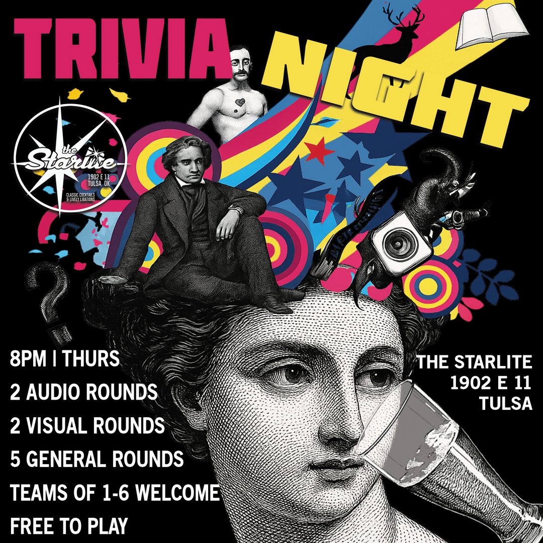 Join us every Thursday evening for Trivia at The Starlite, where the questions are sharp, the drinks are strong, and the vibes are weird, in a good way!
