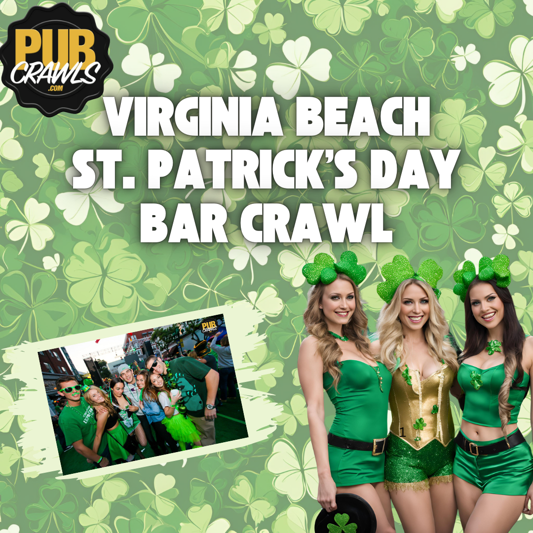 Get ready for the Virginia Beach St. Patrick's Day Weekend Bar Crawl on Saturday, March 14th, 2026! Kick off St. Patrick’s Day weekend in Virginia Beach in style by hitting the city’s top bars! Enjoy St. Paddy's drink specials and soak up the festive energy with your crew. This is the must-attend St. Patrick’s Day event of 2026!