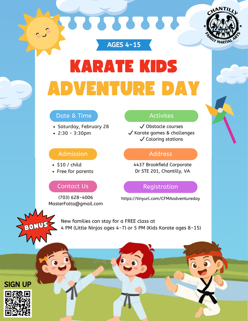 π Bonus for new families: Stay for a FREE class at 4:00 PM (Little Ninjas, ages 4β7) or 5:00 PM (Kids Karate, ages 8β15)!