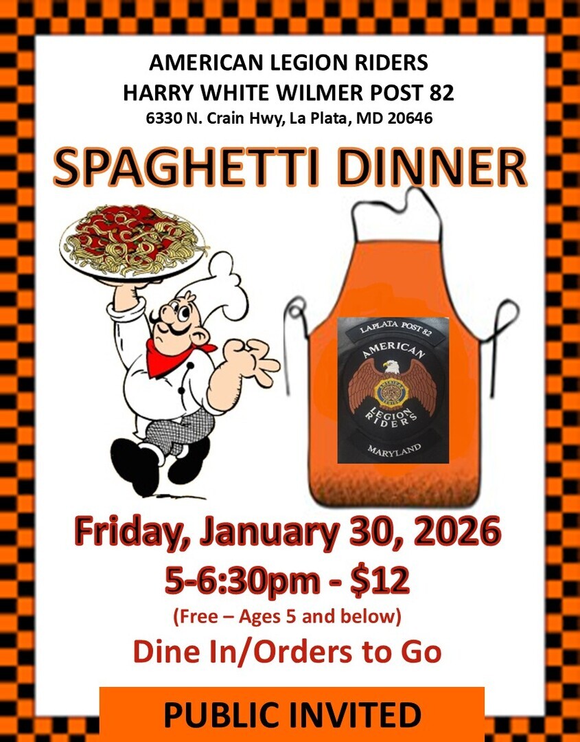 Harry White Wilmer American Legion Post 82, 6330 N. Crain Hwy, La Plata, MD.