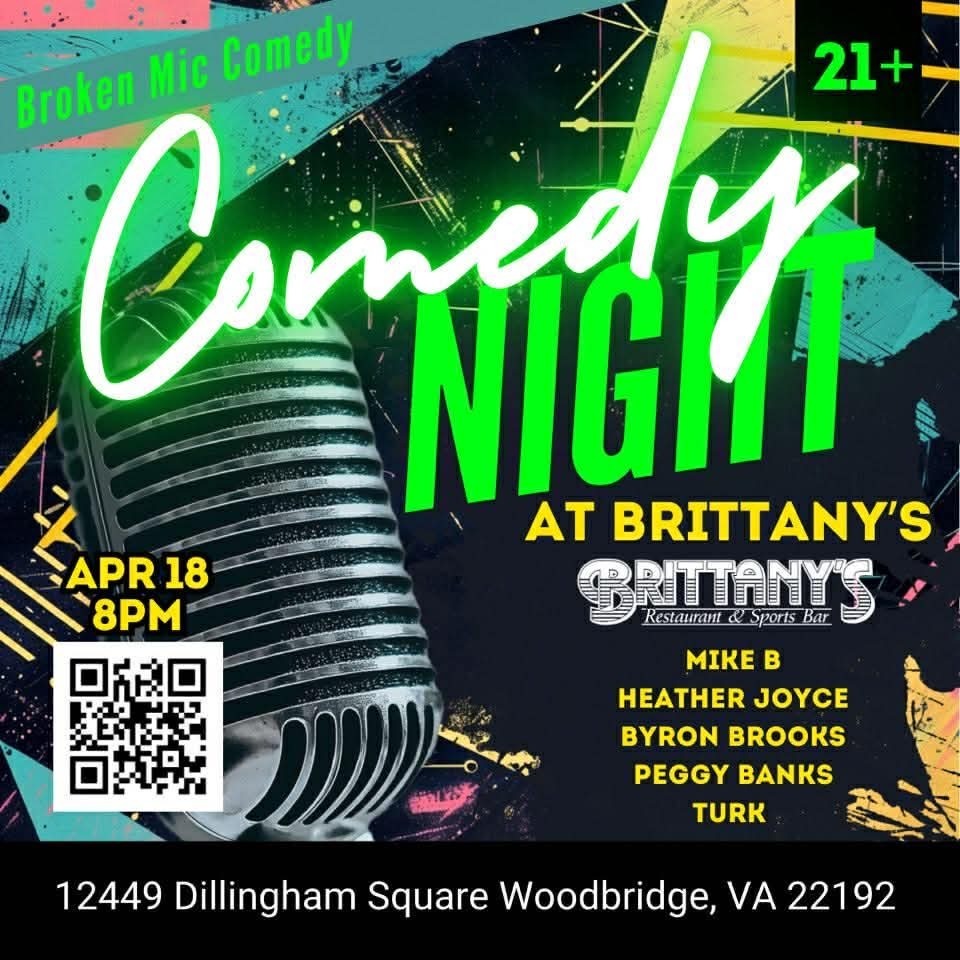 Get ready to laugh your socks off at Comedy Night at Brittany’s Sport Bar! Join us for a hilarious evening filled with stand-up comedians ready to tickle your funny bone. Bring your friends, grab a drink, and get ready for a night of non-stop laughter. Don't miss out on the chance to have a great time and unwind after a long week with comedians that have been seen at the DC Improv, DC Comedy Loft and other comedy clubs across the United States. Mark your calendars and come join us for a night you won't forget!