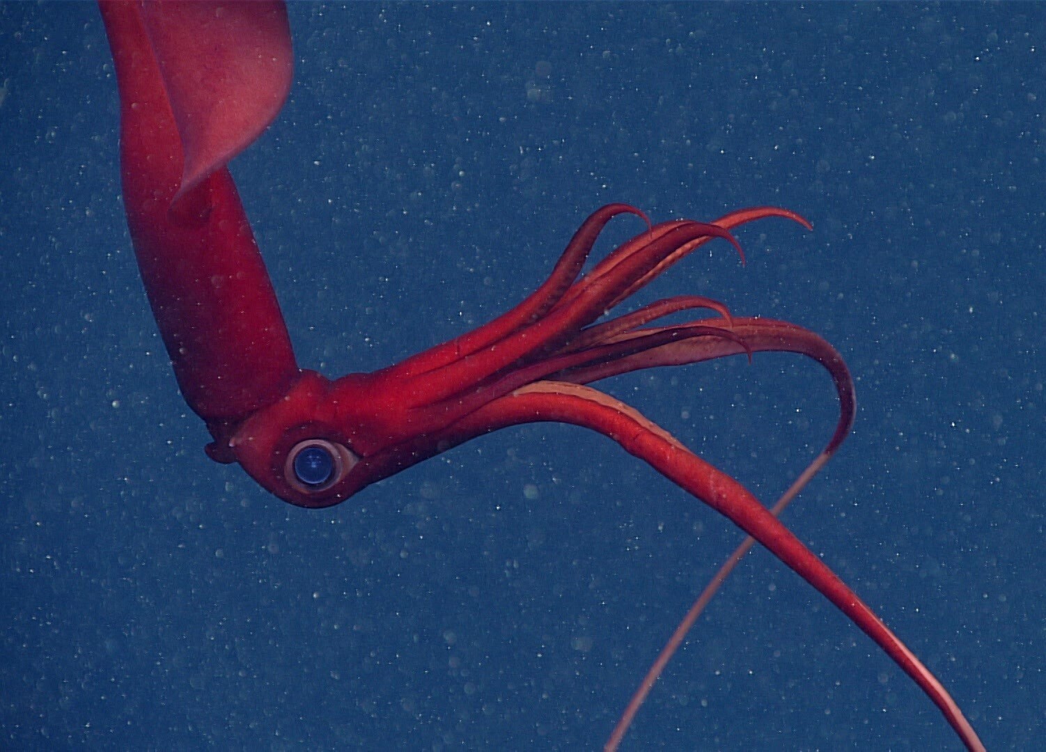 Image: Magnoteuthis magna, the most common deep-ocean squid, as photographed in Kinlan Canyon off of Rhode Island (NOAA Ocean Exploration photo).