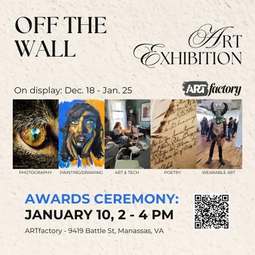 The ARTfactory is proud to present the 22nd Annual Off the Wall High School Art Exhibit & Competition, an inspiring showcase of emerging creative talent from across the region. Each year, local high school students are invited to participate in this juried exhibition, which encourages artistic expression and creativity in a professional gallery setting.