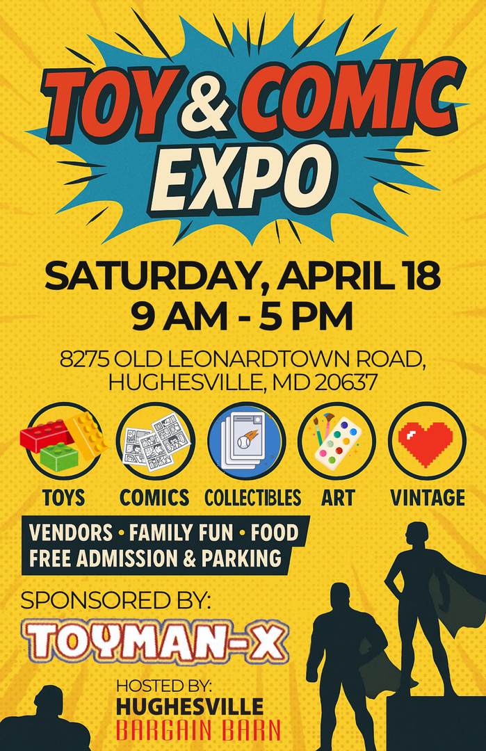 Join us for a full day of fun at our Toy & Comic Expo! With over 40 guest vendors (completely sold out) plus our full-time Bargain Barn vendors, youโll find a wide variety of toys, comics, collectibles, and unique items all under one roof.