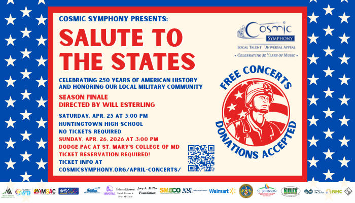 COSMIC Symphony is thrilled to present “Salute to the States,” a festive performance celebrating 250 years of American History! As always, these concerts are presented free of charge, and donations are greatly appreciated.