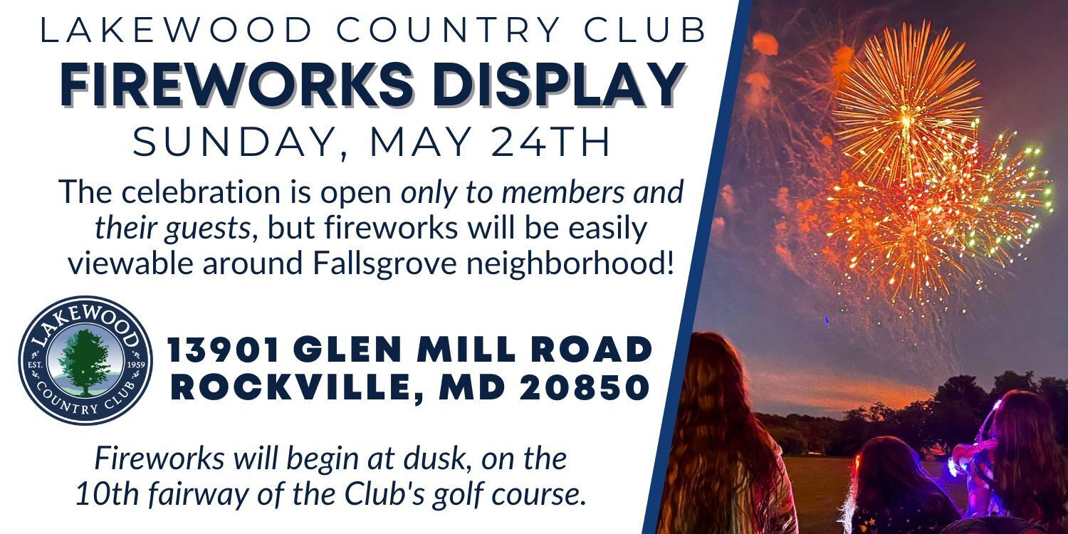 On Sunday, May 24th, at 9PM, Lakewood Country Club will have fireworks to honor and remember those who served. The fireworks will be held at a private club, but they will be visible throughout the Fallsgrove & Glen Mill neighborhoods!