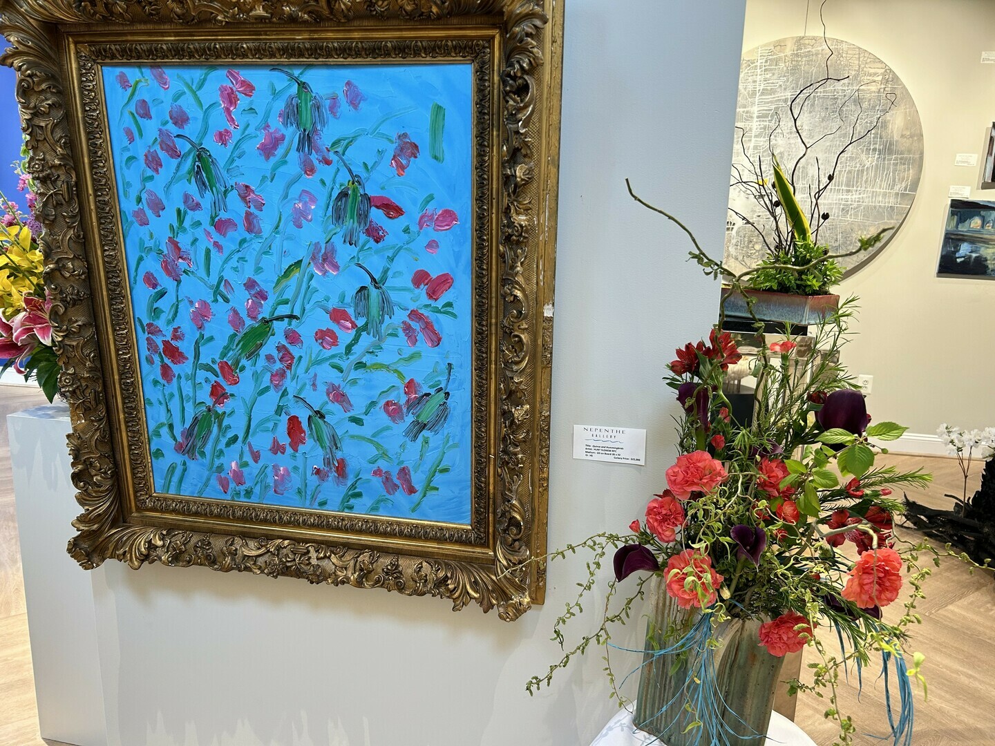 This is such a favorite event and a marvelous collaboration! Several members of the Garden Club of Waynewood create unique and glorious floral arrangements inspired by an original artwork from our Nepenthe Collection. The arrangements will be displayed through the weekend.