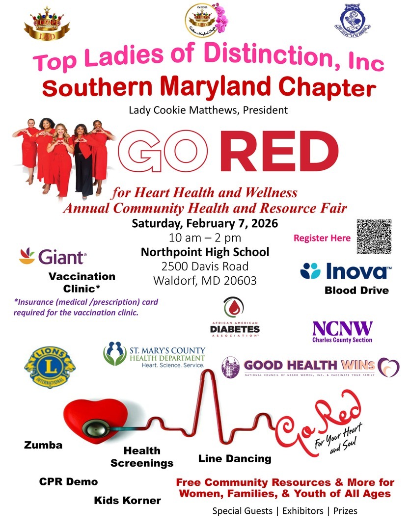 HomeEventsGo Red for Heart Health and Wellness Annual Community Health and Resource Fair Go Red for Heart Health and Wellness Annual Community Health and Resource Fair Saturday, February 07, 2026 10:00 AM - 2:00 PM 10:00 AM - 2:00 PM See all dates and Times North Point High School Parking Deals Get a Ride LYFT UBER Add to Calendar 02/07/2026 10:00 AM 02/07/2026 02:00 PM America/Atikokan Go Red for Heart Health and Wellness Annual Community Health and Resource Fair Free community resource for all ages. Special guests, Exhibitors and Prizes. Blood drive, vaccination clinic, and health screenings. Details & Tickets: https://www.upcomingevents.com/washington-dc/events/north-point-high-school/go-red-for-heart-health-and-wellness-annual-community-health-and-resource-fair-583750?ref=uceaddevent North Point High School, 2500 Davis Road, Waldorf, MD, 20603 Set Reminder Categories Benefits Charity, Fundraising & Charity, Neighborhood, Politics & Activism Free community resource for all ages. Special guests, Exhibitors and Prizes. Blood drive, vaccination clinic, and health screenings.