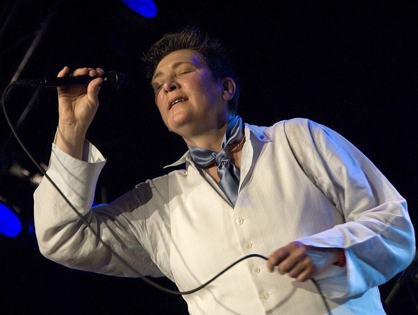 Image: Country artist k.d. lang performs in 2008 as part of the Cambridge Folk Festival (Photo by Bryan Ledgard / Creative Commons).